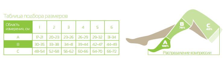 легания ноги. Подбор размера изделия в соответствии с показателями прилагаемой таблицы.