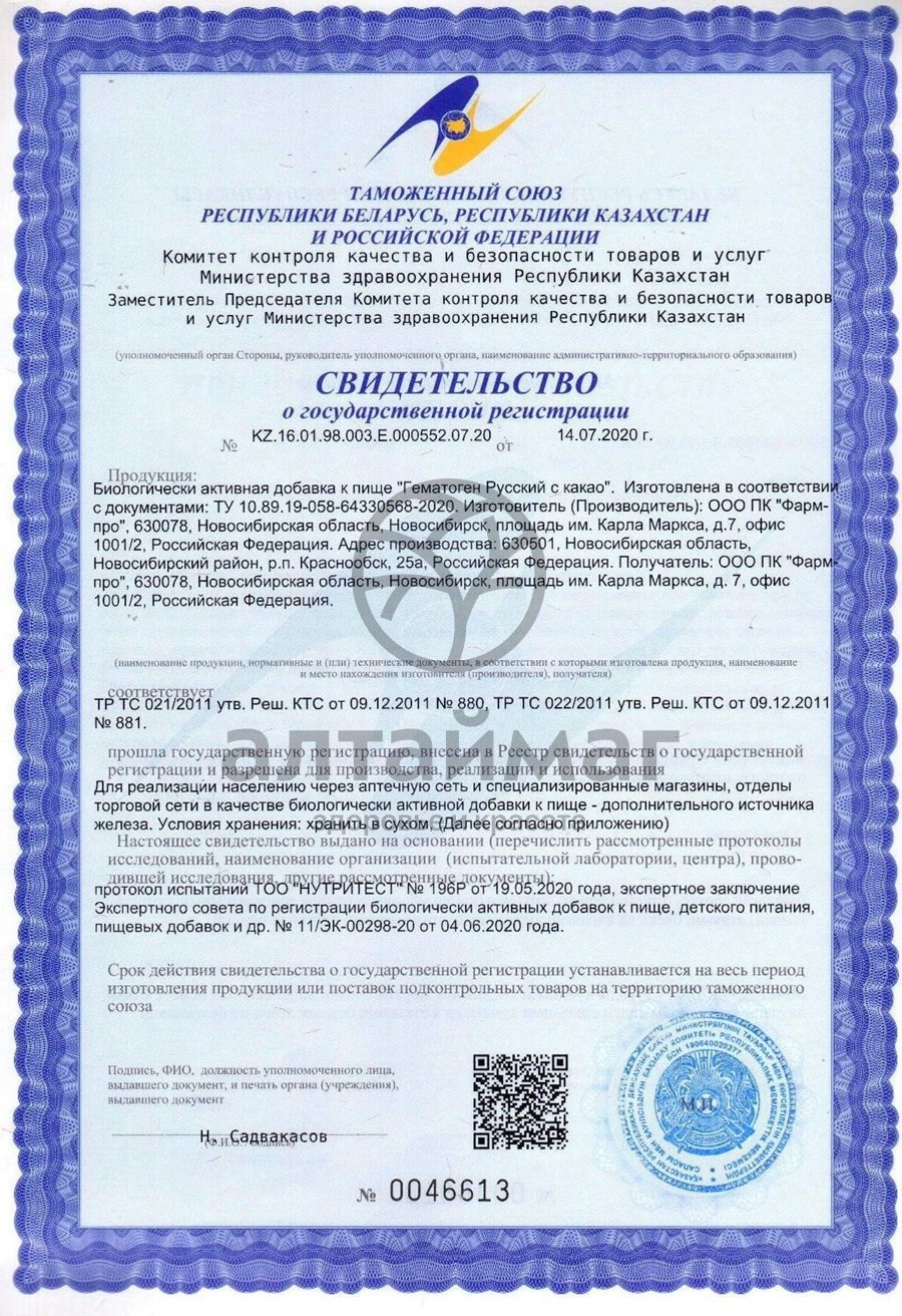 - Гематоген «Русский с какао» – сочетание классического гематогена и какао – непередаваемое удовольствие!