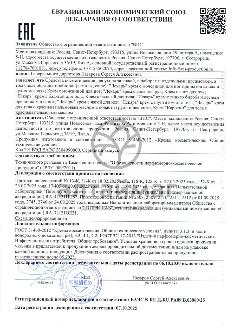 Есть вопросы по товару "Крем для тела с Бадягой Лекарь ВИС 50мл"?