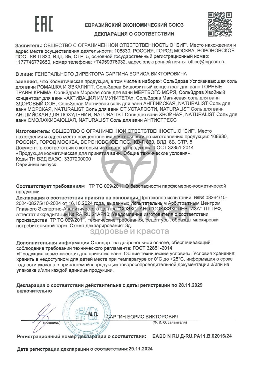Есть вопросы по товару "Натуралист Соль для ванн «От усталости», 500г"?
