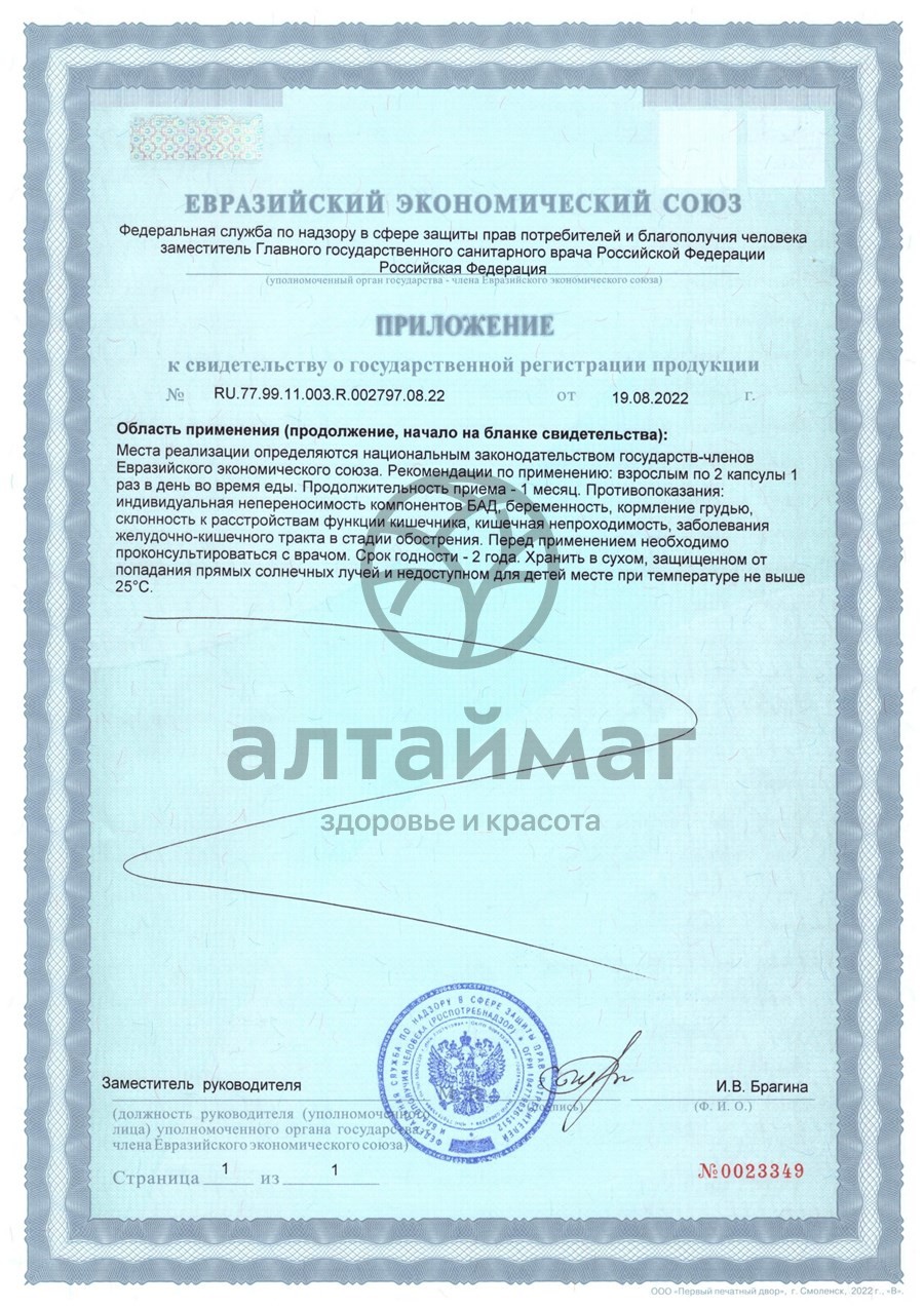 Взрослым по 2 капсулы 1 раз в день во время еды. Продолжительность приема - 1 месяц.Противопоказания